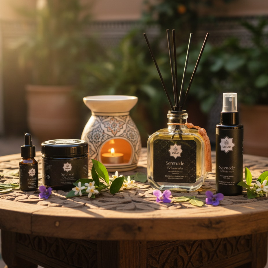 En spray ou en fondants parfumés, nos créations diffusent des senteurs inspirées du Maroc — entre tradition et modernité.