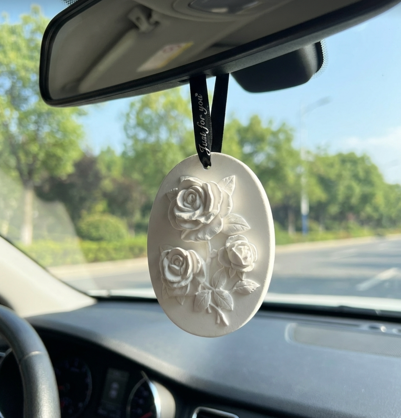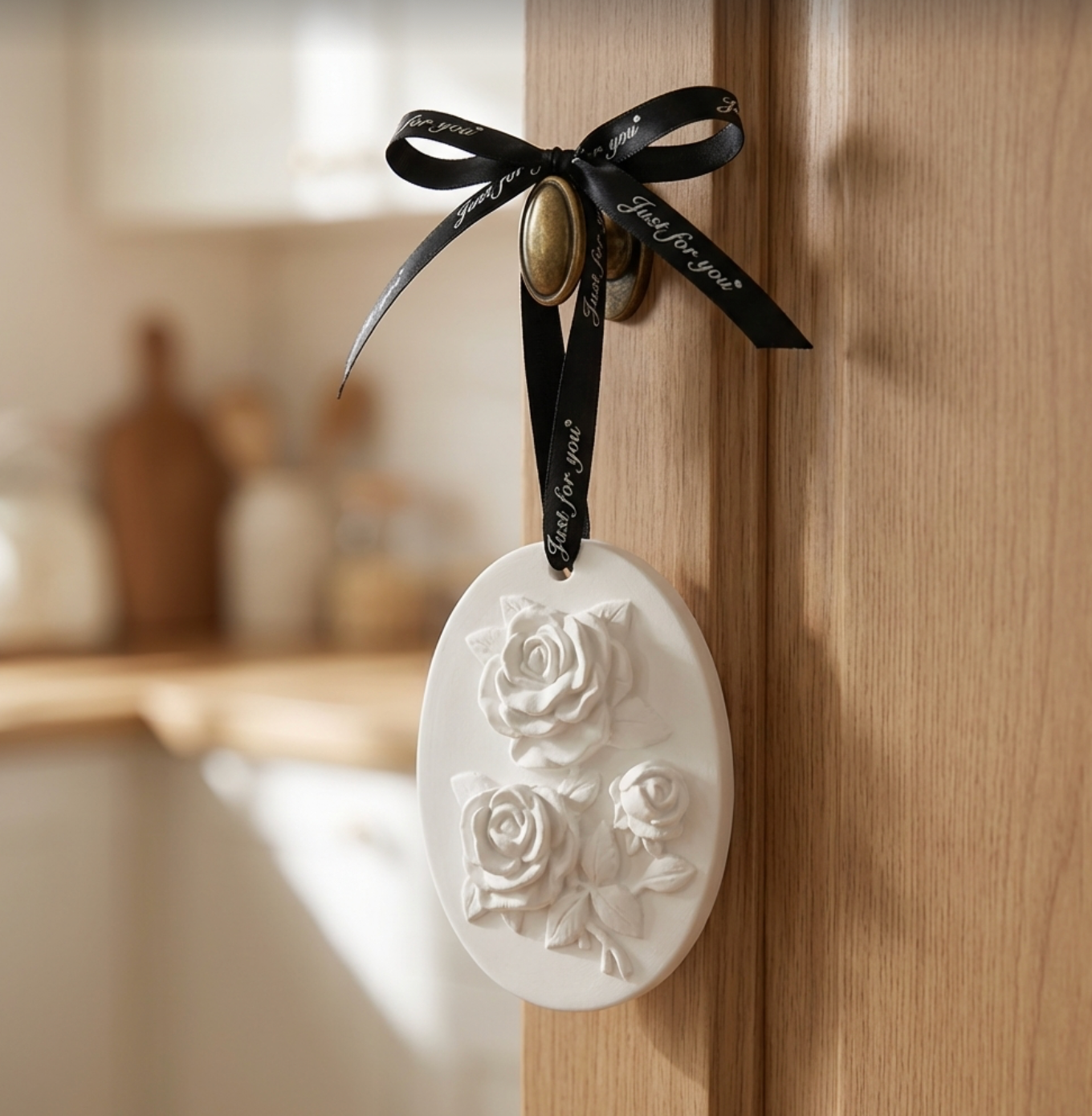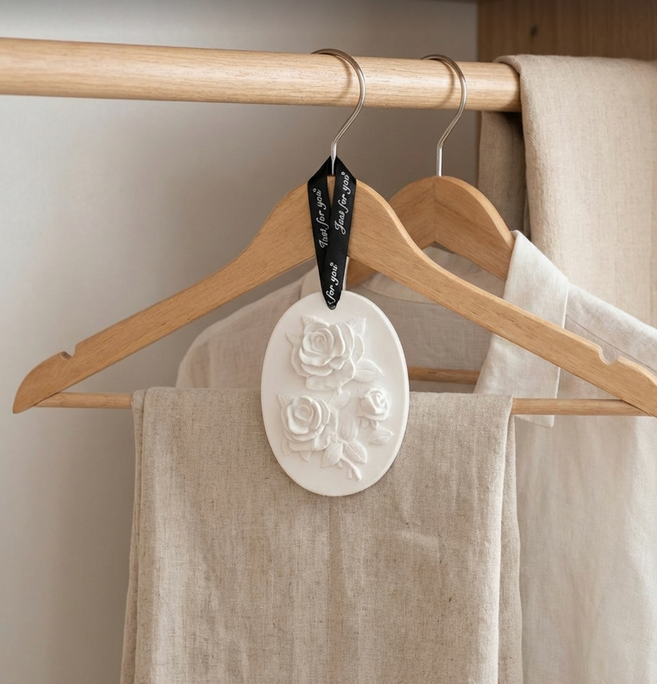 Suspension parfumable en plâtre – Roses sculptées