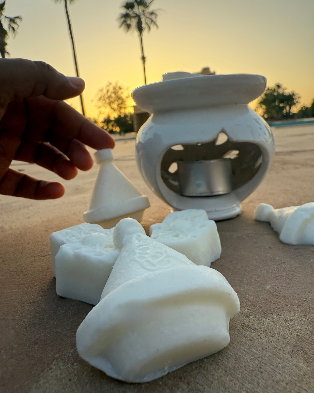 Parfum solide à faire fondre sous formes tajine ou khmissa.